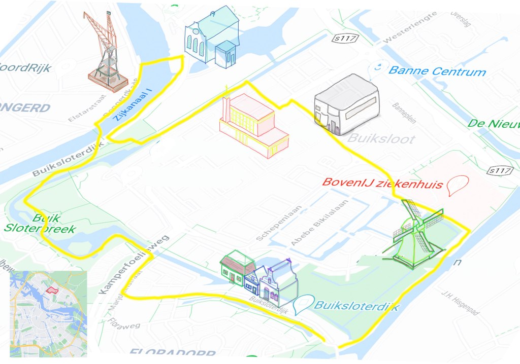 Wanneer je Banne Zuid benadert vanaf het centrum van Amsterdam, kan je via de Buiksloterdijk richting de wijk fietsen. De Buiksloterdijk heeft een interessante geschiedenis op zich; ooit woonden hier de kapiteins van de rederij. Aan de Noordhollandschkanaaldijk bevindt zich de Krijtmolen d’Admiraal. Dit is een monumentale krijtmolen uit 1792. Het Rijksmonument is de laatst overgebleven tras- en krijtmolen van Nederland. De afgelopen jaren is de molen gerestaureerd. Voor een bezoek aan de molen, kan er contact opgenomen worden met de molenaar.